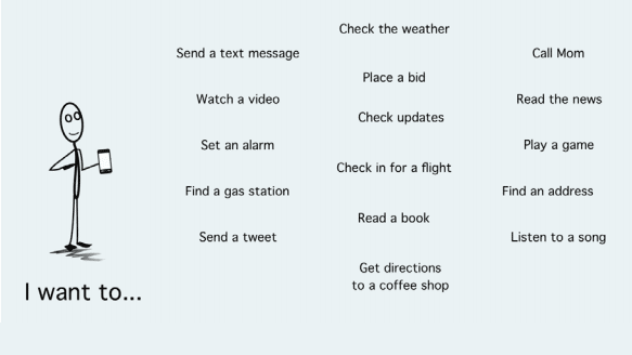 The user’s needs are the center of this whole project. Google notes that people rely on their phones for quite a lot these days, and the tasks can range from a simple one like asking the weather to a complex one like finding movie times near them. The first point Google makes is that phones can be cumbersome; small screens, limited keyboard access, etc. Therefore, mobile smartphones should make tasks easy, even for mobile users with a small screen size. We live in an era of “now”, meaning we want things immediately. The algorithm is supposed to allow us to find information we want with a minimal amount of work.